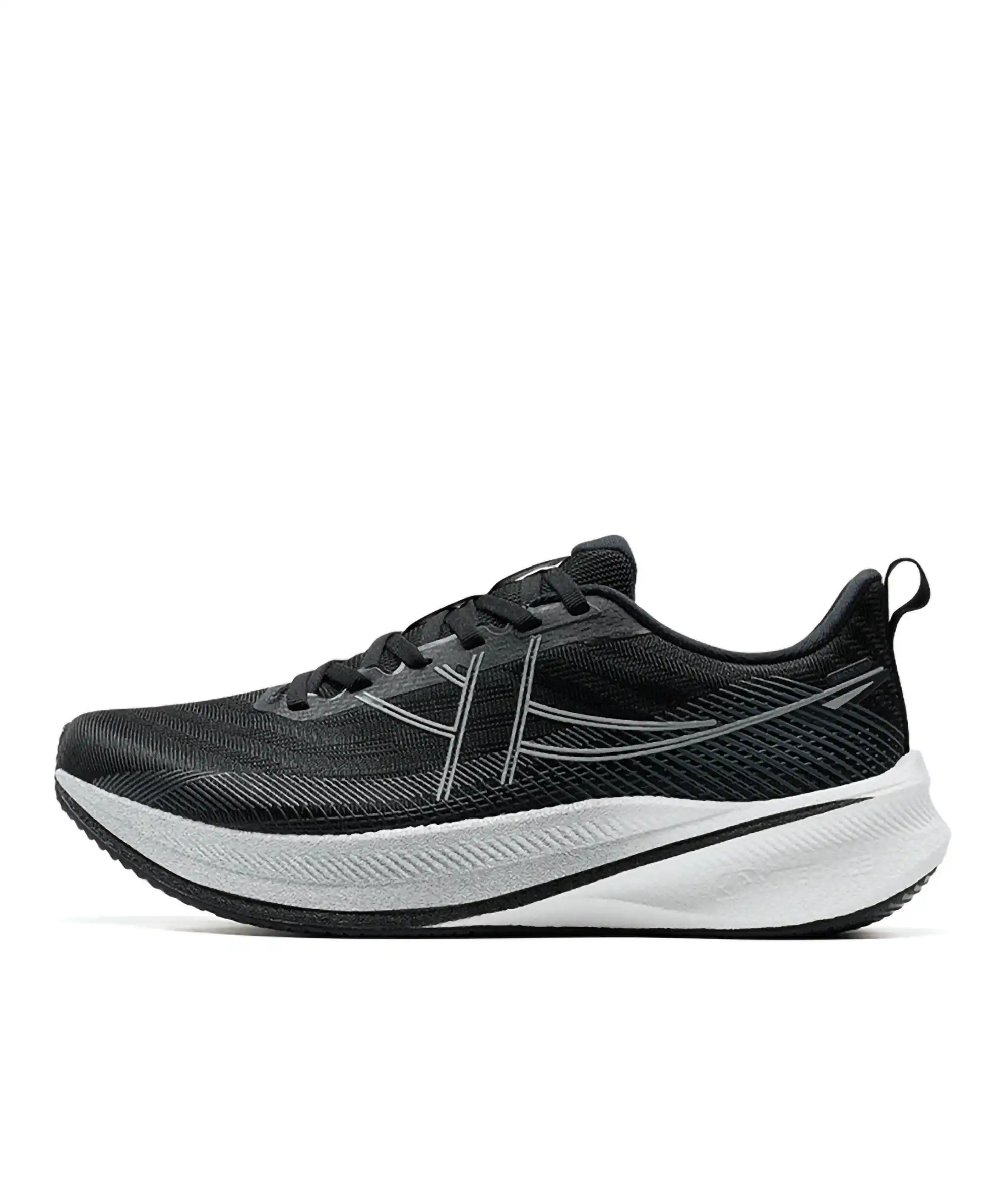 • Amorti et rebond : semelle intermédiaire en ETPUW avec plaque en carbone pour un retour d’énergie optimal et une foulée dynamique.