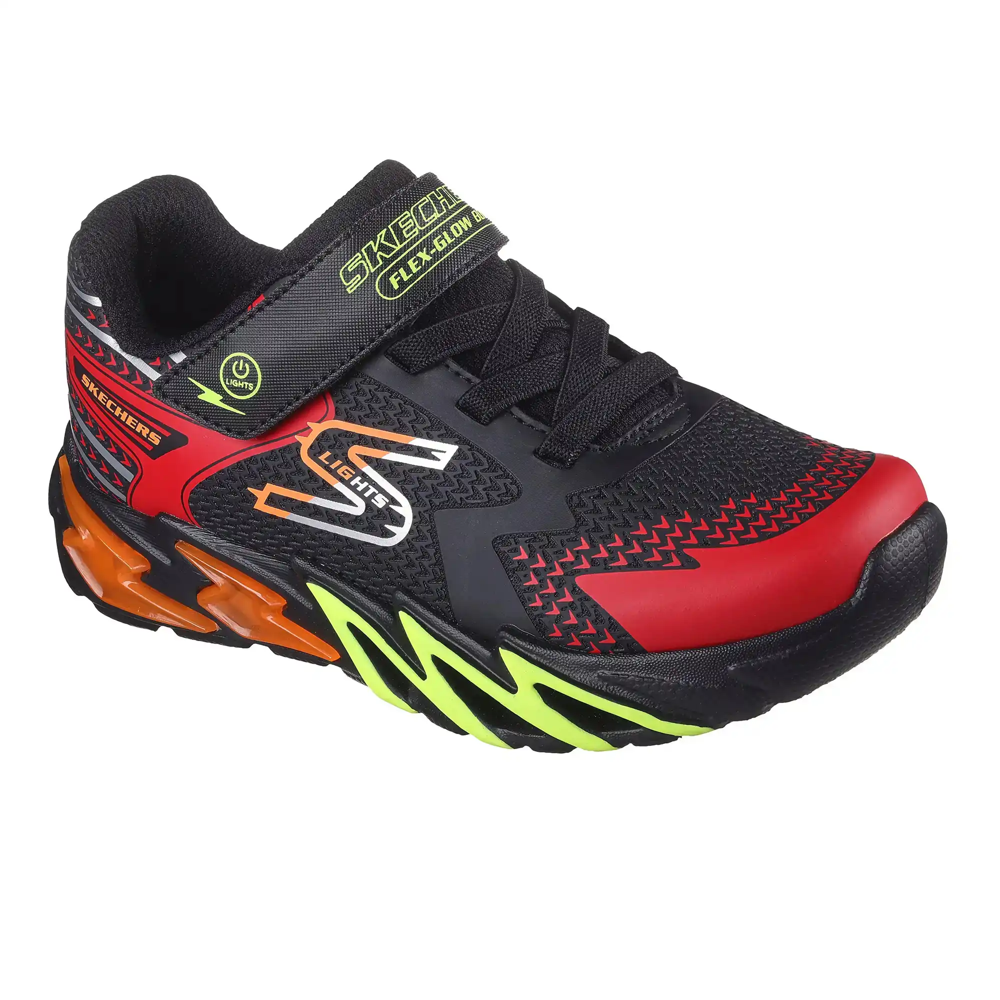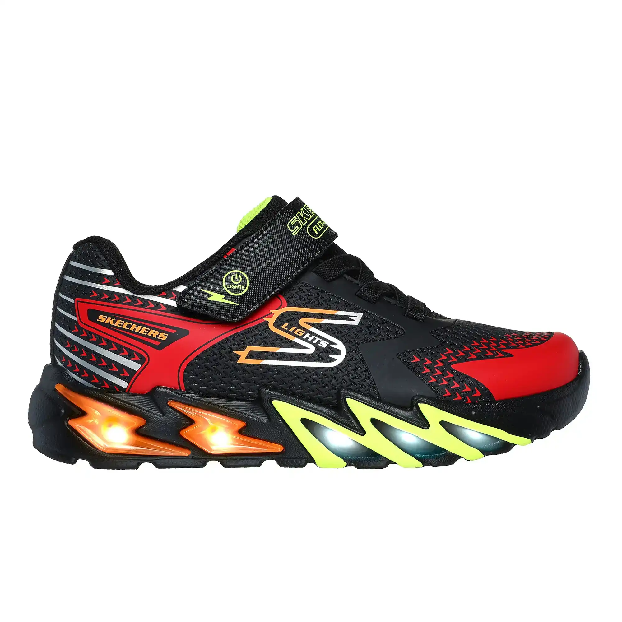 Équipez-vous avec style et confort avec la Skechers S-Lights® : Flex-Glow Bolt. Ce modèle éclairé présente une tige en maille et en synthétique avec des lacets extensibles, une sangle de cambrure ajustable et une semelle intérieure coussinée confortable.