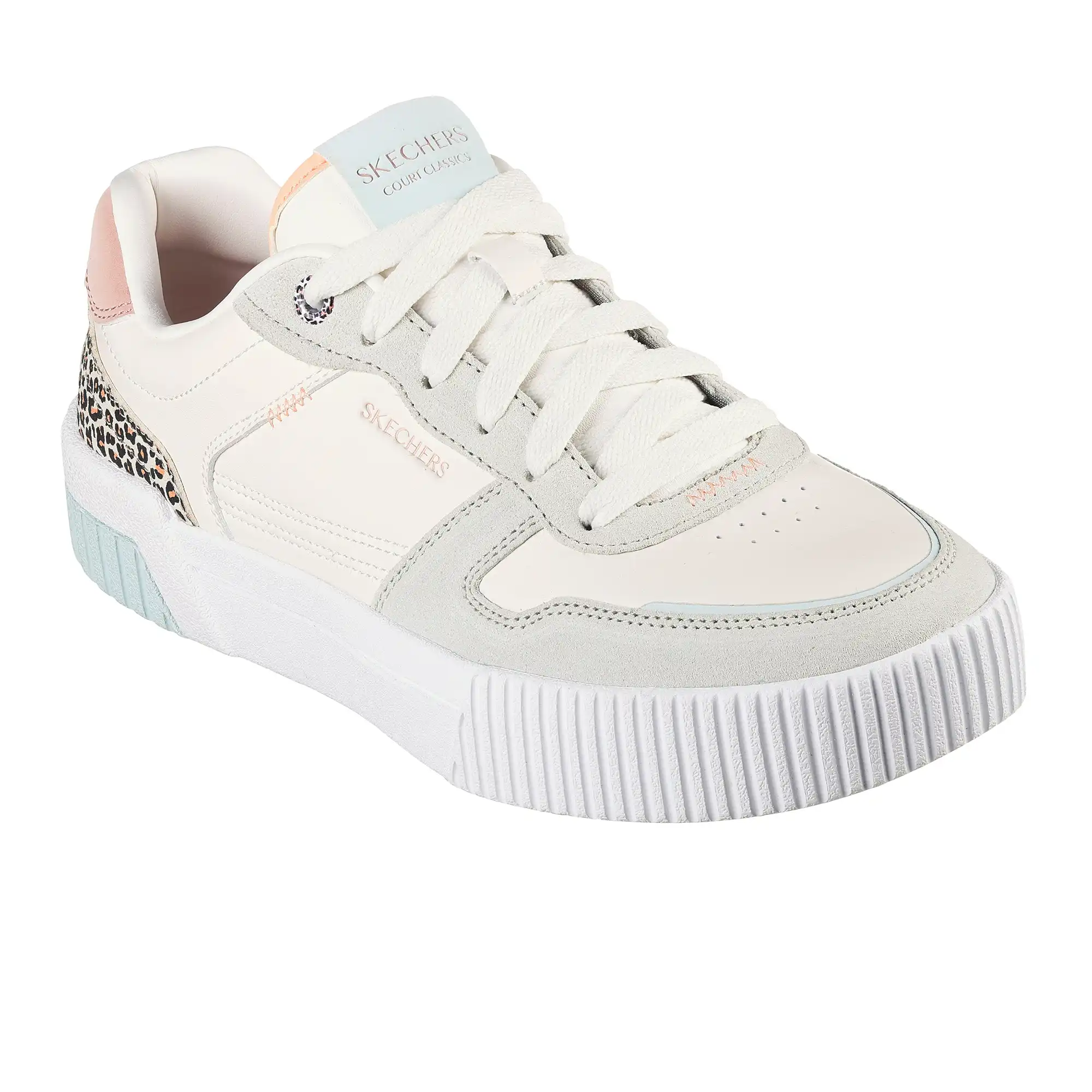 • Tige en duraleather et suède véritable avec contrefort talon imprimé léopard.