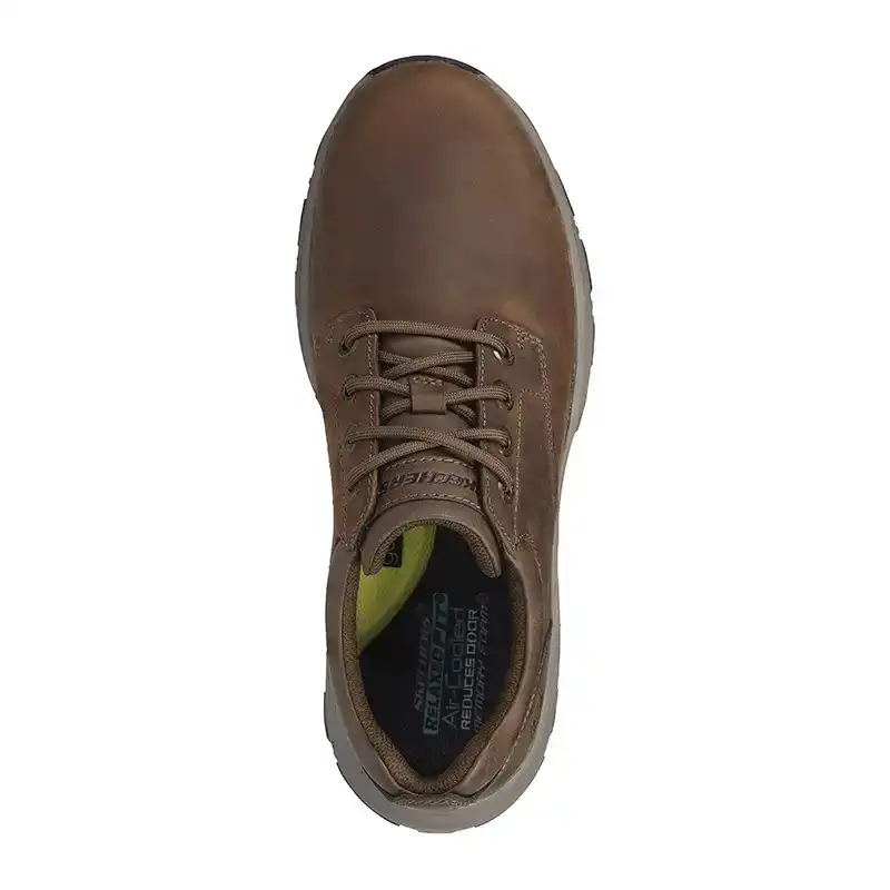 Apportez un style durable et un confort partout avec Skechers Relaxed Fit® : Knowlson – Leland. Ces chaussures à lacets spacieuses sont dotées d’une tige en cuir, d’une semelle intérieure Air-Cooled Memory Foam® neutralisant les odeurs et d’un amorti Skechers Goga Mat Arch™ pour un soutien supplémentaire.