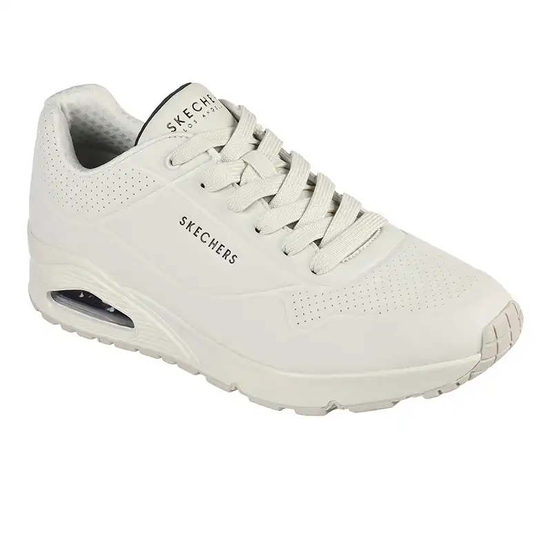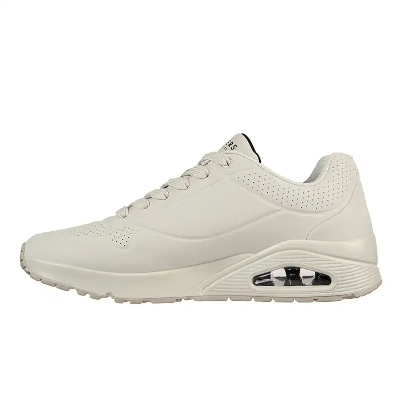 Le confort classique à coussin d’air rencontre une nouvelle mise à jour dans la chaussure Skechers Street™ Street Uno – Stand on Air. Cette sneaker tendance à lacets est dotée d’une tige synthétique perforée lisse avec une semelle intérieure Air-Cooled Memory Foam® et une semelle intermédiaire à coussin d’air visible Skech-Air®.